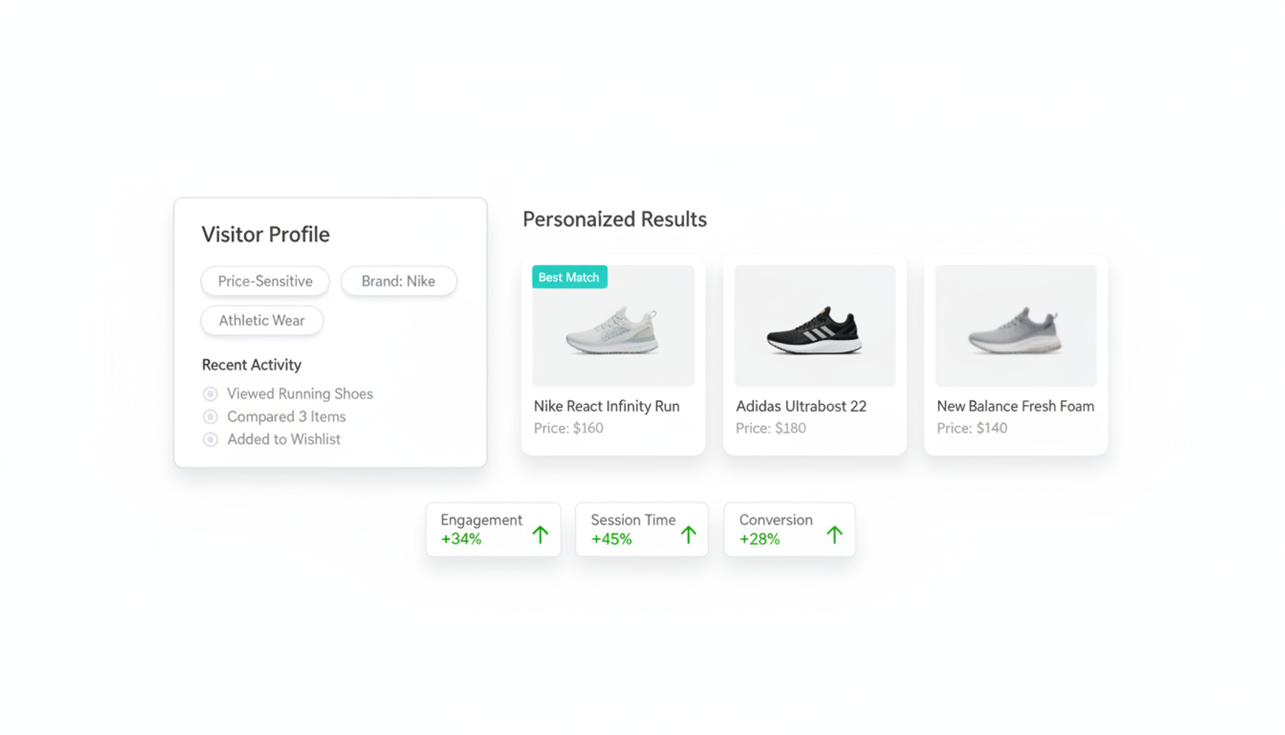 Visitors stay longer when every interaction surfaces relevant products, not dead ends.