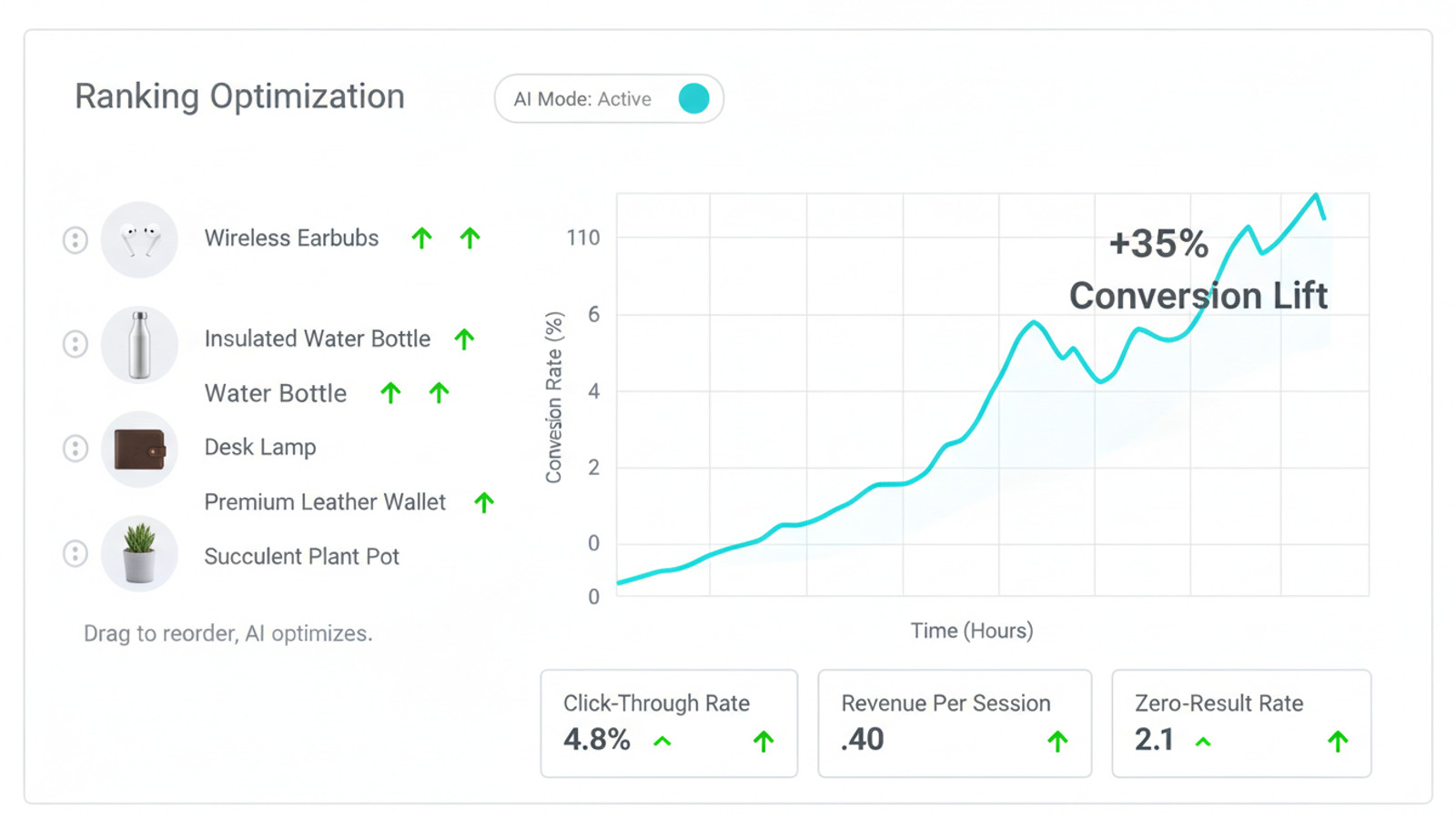 Seekora customers typically see 20-35% conversion rate improvement, 15-25% average order value increase, and significant reduction in bounce rates and zero-result searches within the first 30 days.