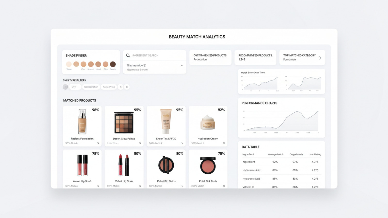 Track shade demand, ingredient trends, and conversion by skin concern.